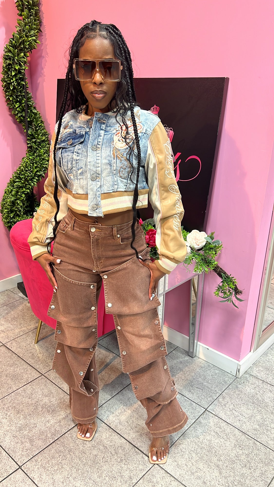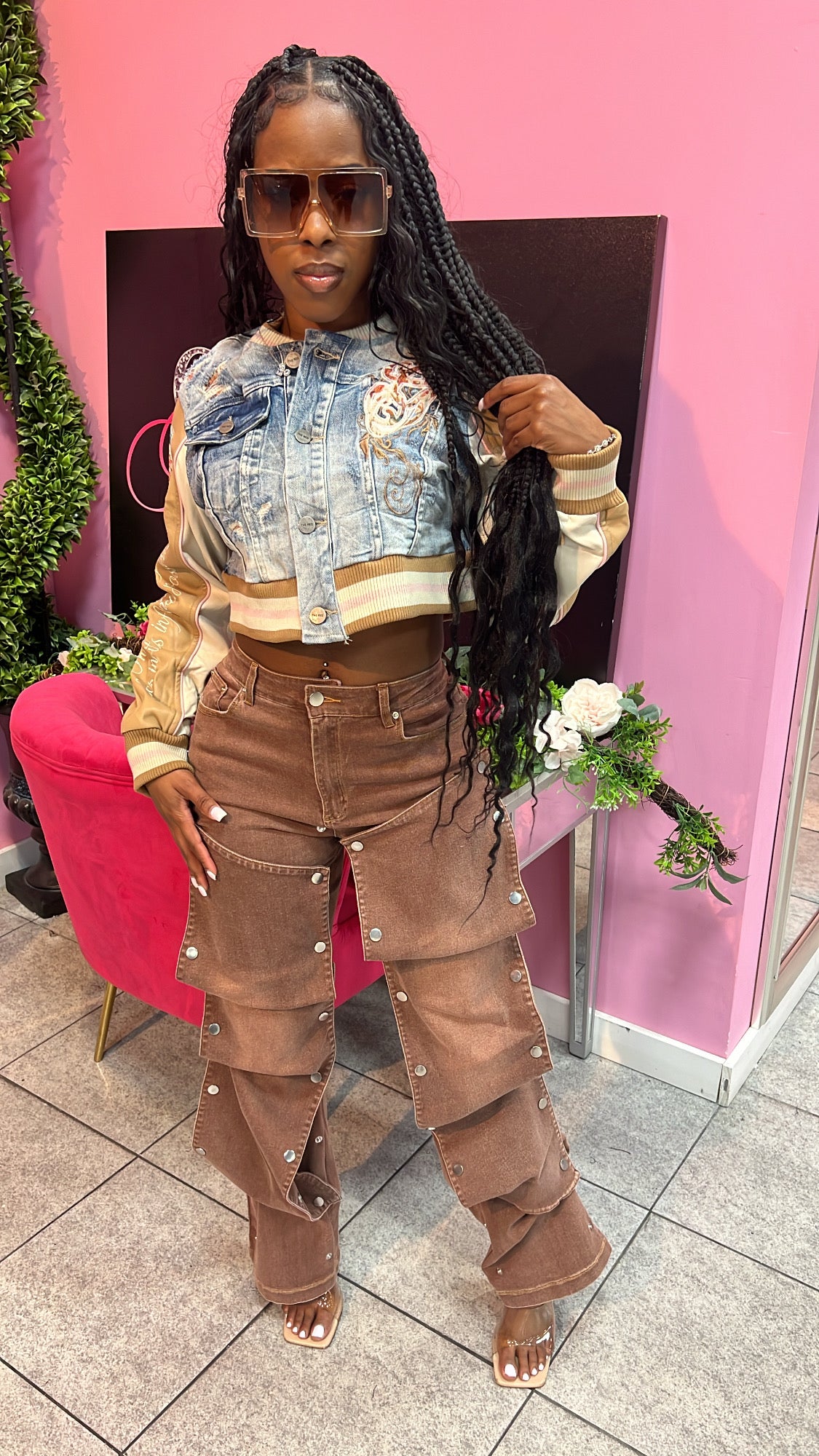 Elevate your everyday look with this versatile denim varsity—because every outfit deserves a touch of attitude.