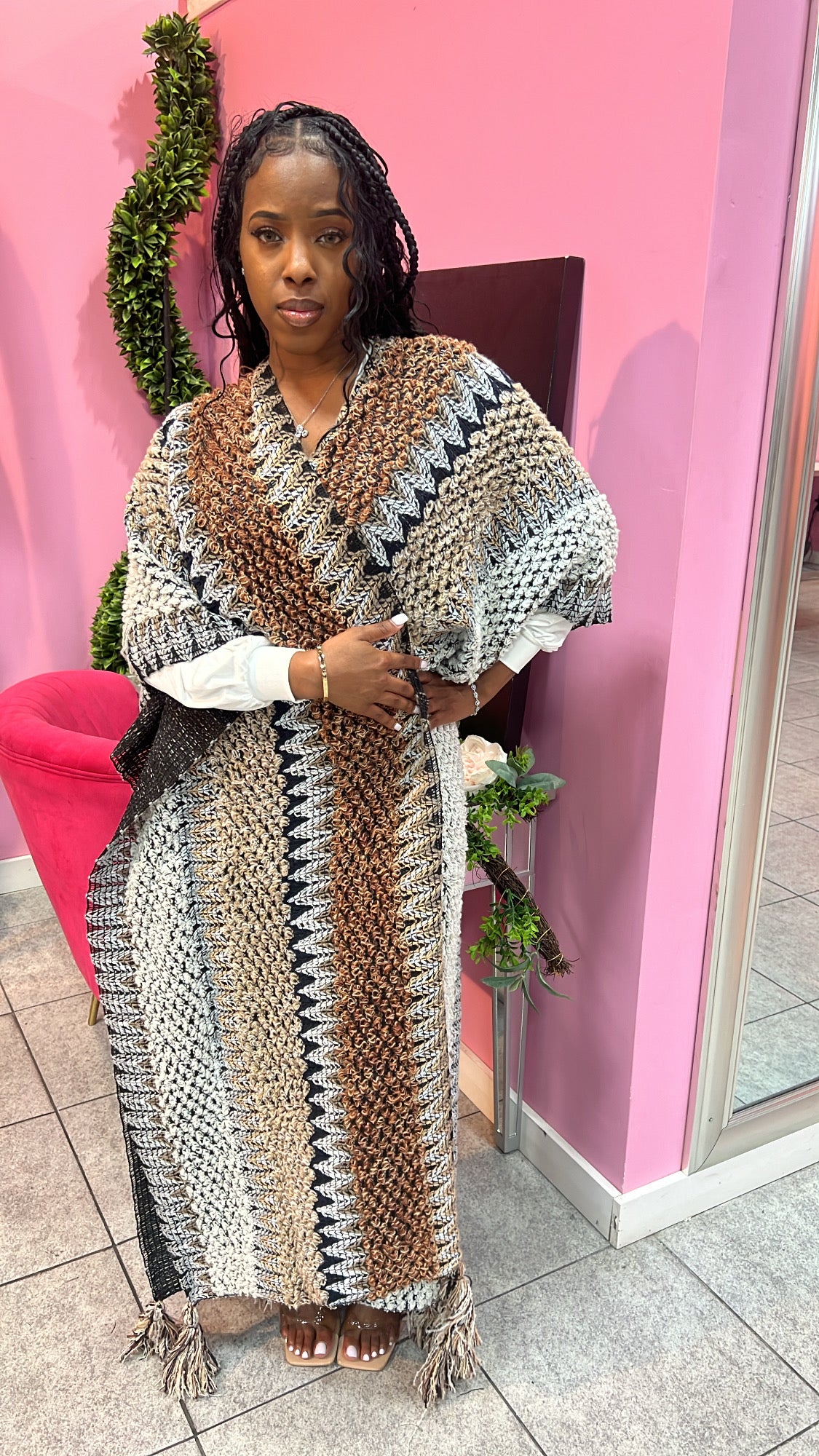 Wrap yourself in effortless style with the Elysian Knit Kimono Wrap. This one-size-fits-most, multicolor layering piece features a flowing, open-front design with a relaxed poncho silhouette that drapes beautifully on any body type. Perfect for transitional weather, cozy layering, or adding a bold pop of color to any outfit, this long cardigan is as versatile as it is eye-catching. Throw it on over jeans, leggings, or a dress for instant boho-chic vibes — no styling stress required.